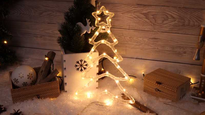 LED karácsonyi ablakdísz,fenyőfa,elemes, Timer 6+18h, 30LED, 3000K, 3xAA, CHRAT30WW