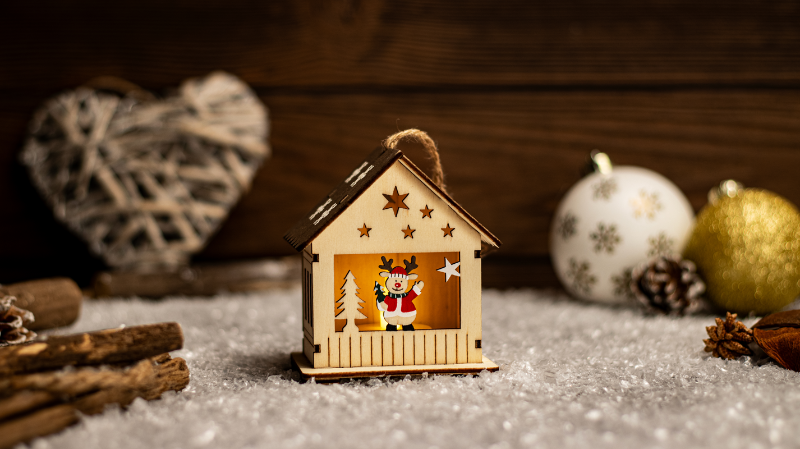 LED karácsonyi ablakdísz, ház,rénszarvas, elemes Timer 6+18h, 1LED, 3000K, 1xCR2032