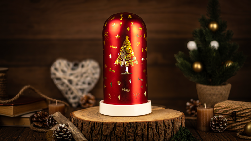 LED karácsonyi bura, fenyő, üveg, elemes , Timer 6+18h, 10LED, 3000K, 3xAA,CHRGR10WW