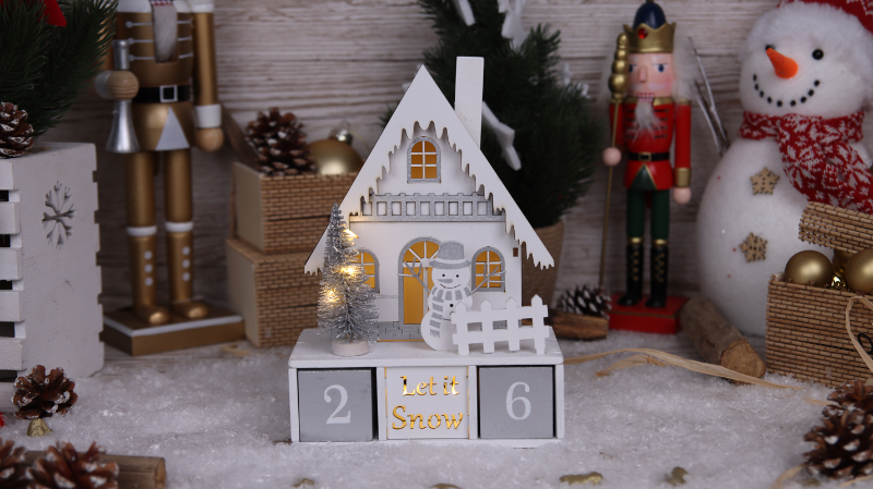Led karácsonyi kocka naptár, házikó, fa, elemes Timer 6+18h,8LED, 3000K, 2xAA CHRACHS8WW