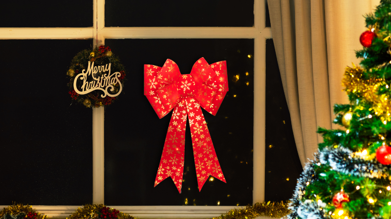 LED karácsonyi masni, vörös,arany, elemes, Timer 6+18h,25LED, 3000K, 2xAA,CHRBORG25WW