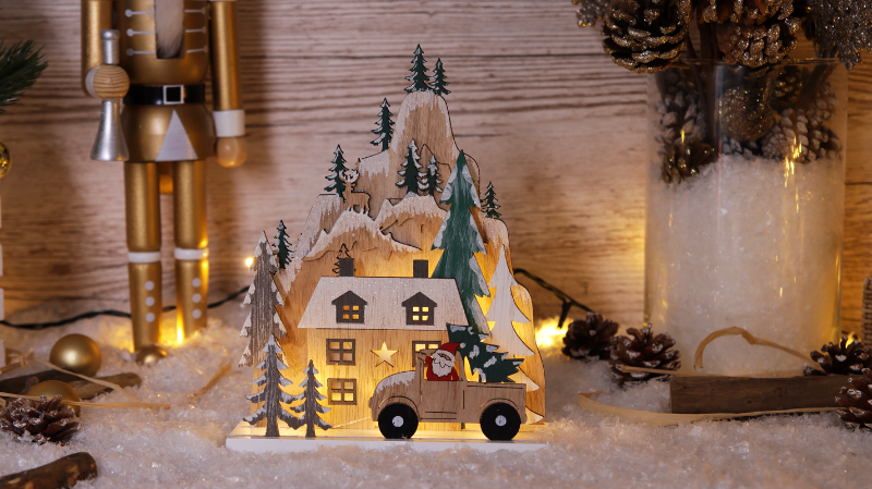 LED karácsonyi tájkép, fa, elemes Timer 6+18h,10LED, 3000K, 2xAA CHRWHC10WW