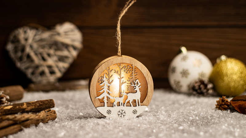 LED karácsonyi tájkép,szarvas,fa, elemes, Timer 6+18h, 1LED, 3000K, 2xLR44,CHRAFRD1WW