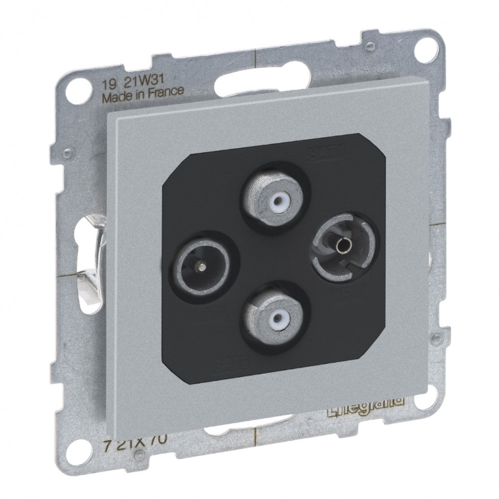 LEGRAND Suno alumínium TV-R-SAT-SAT csatlakozóaljzat, végzáró keret nélkül 721370