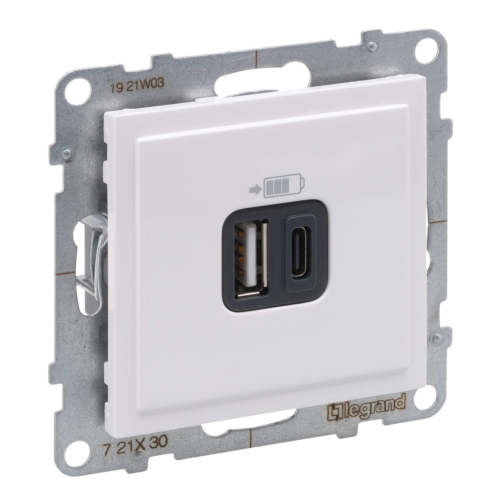 LEGRAND Suno fehér 2xUSB - A+C csatlakozóaljzat, 3 A - 15 W, keret nélkül 721130