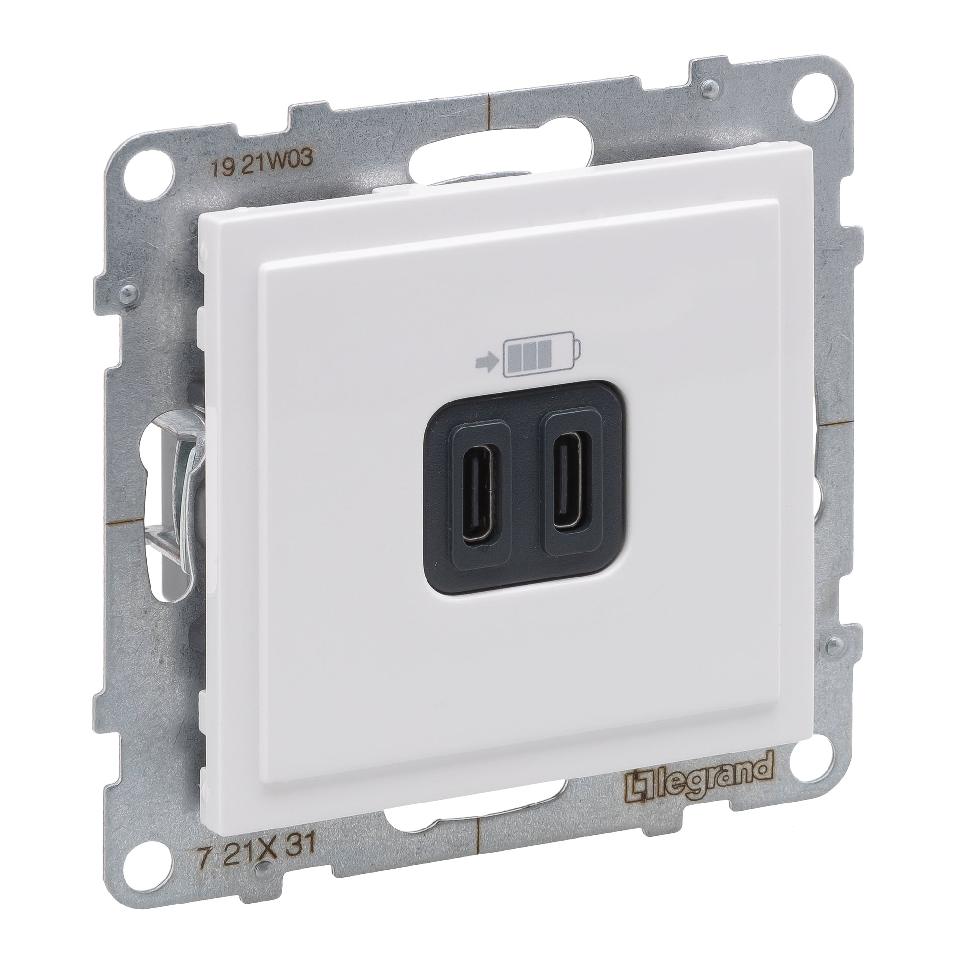 LEGRAND Suno fehér 2xUSB-C csatlakozóaljzat, 3 A - 15 W, keret nélkül 721131