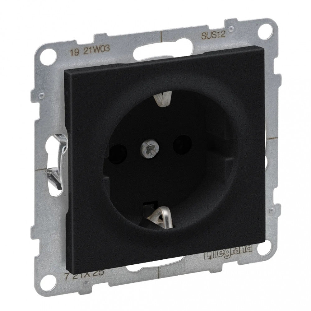 LEGRAND Suno fekete 2P+F csatlakozóaljzat (csavaros), keret nélkül 721425